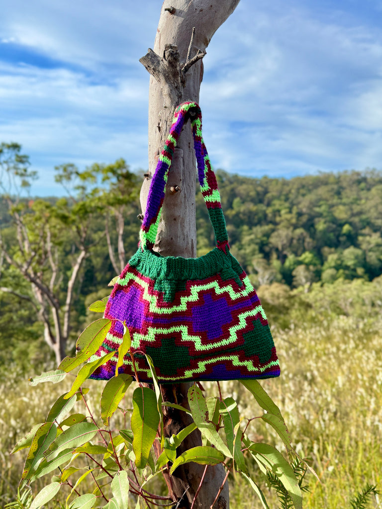 Every Bilum is handwoven by women artisans in Papua New Guinea, using generations-old techniques to create unique pieces that carry both function and story. No two bags are the same — each pattern and colour combination is one-of-a-kind.